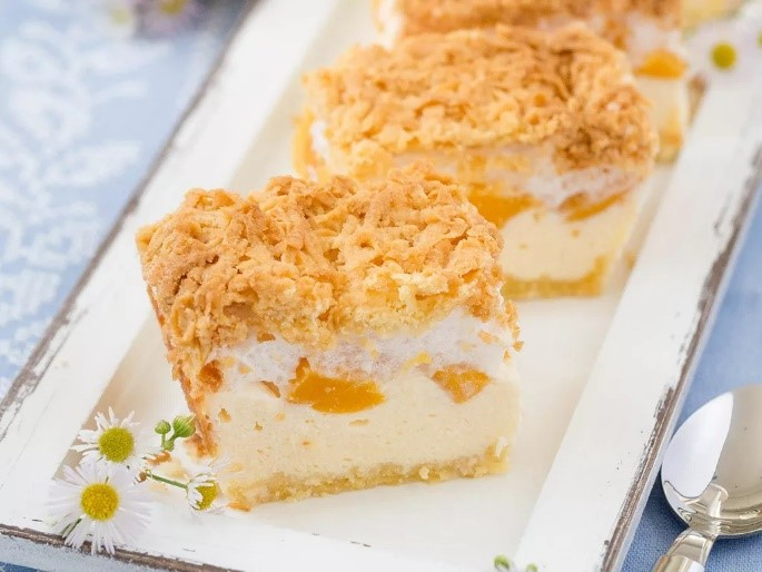 Możemy też pokusić się o przygotowanie tradycyjnego sernika na kruchym spodzie, z bezową pianką i z brzoskwiniami. Ciasto przygotujesz z klasycznych składników, które zazwyczaj każdy ma w domu: mąka, cukier, masło, cukier puder, jajka, budyń, dodatkowo będziesz potrzebować brzoskwinie w puszce oraz dobrej jakości twaróg sernikowy. Ten przepyszny wypiek zachwyci Babcię i Dziadka i umili wspólny czas spędzony przy filiżance herbaty czy kawy.