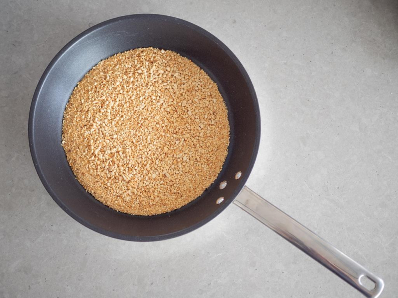 Wierzch posyp ostudzonymi orzechami, udekoruj malinami.