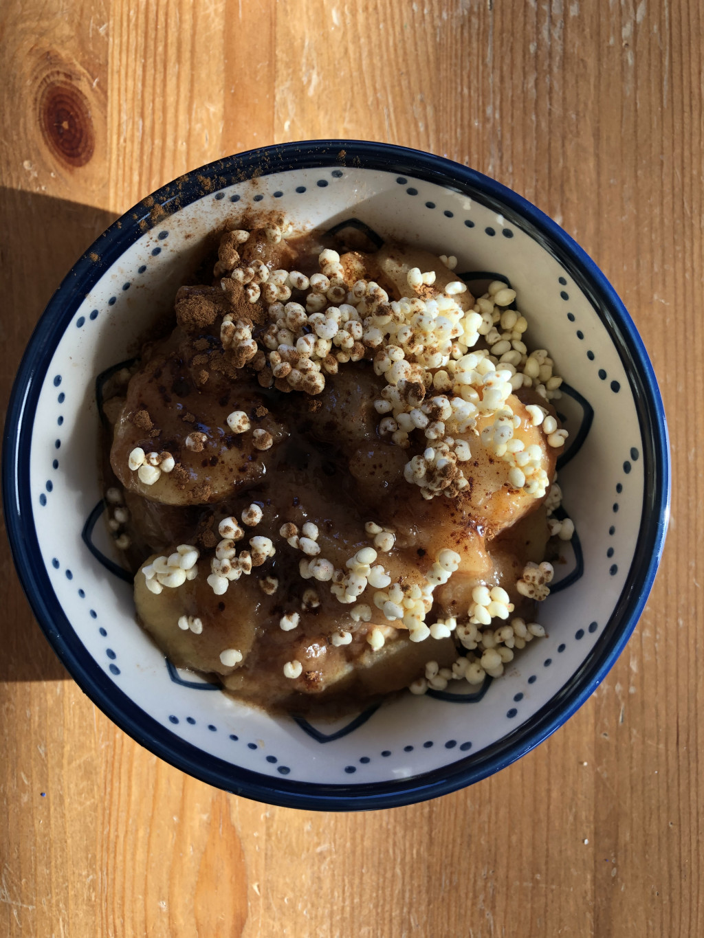 Owsianka z karmelizowanymi bananami to doskonała propozycja pożywnego i pełnowartościowego śniadania. Ziarno owsa jest bogactwem witamin i minerałów, dzięki którym rozpoczniemy dzień pełnią energii! Karmelizowany banan, to świetny dodatek, który wzbogaca nie tylko smak, ale także jest źródłem wielu witamin. Owsianka jest dobrym wyborem dla wszystkich; zarówno dla dzieci, dorosłych, osób dbających o zdrową dietę a nawet dla sportowców. :) Dodatkowo jest bardzo prosta w przygotowaniu. Do zagotowania płatków owsianych możecie użyć mleka, wody lub napoju roślinnego.:) Każdy znajdzie swoją wersję