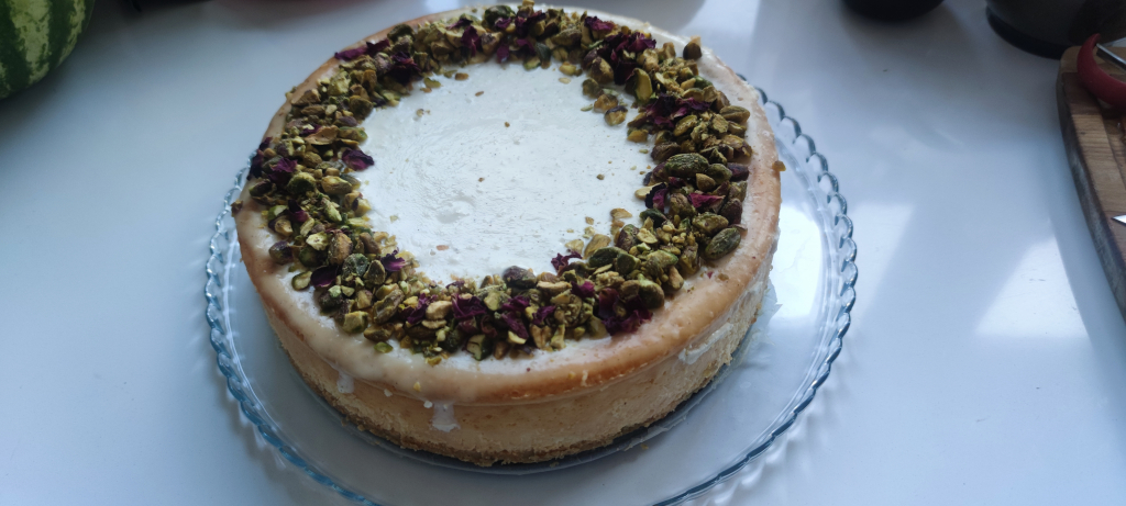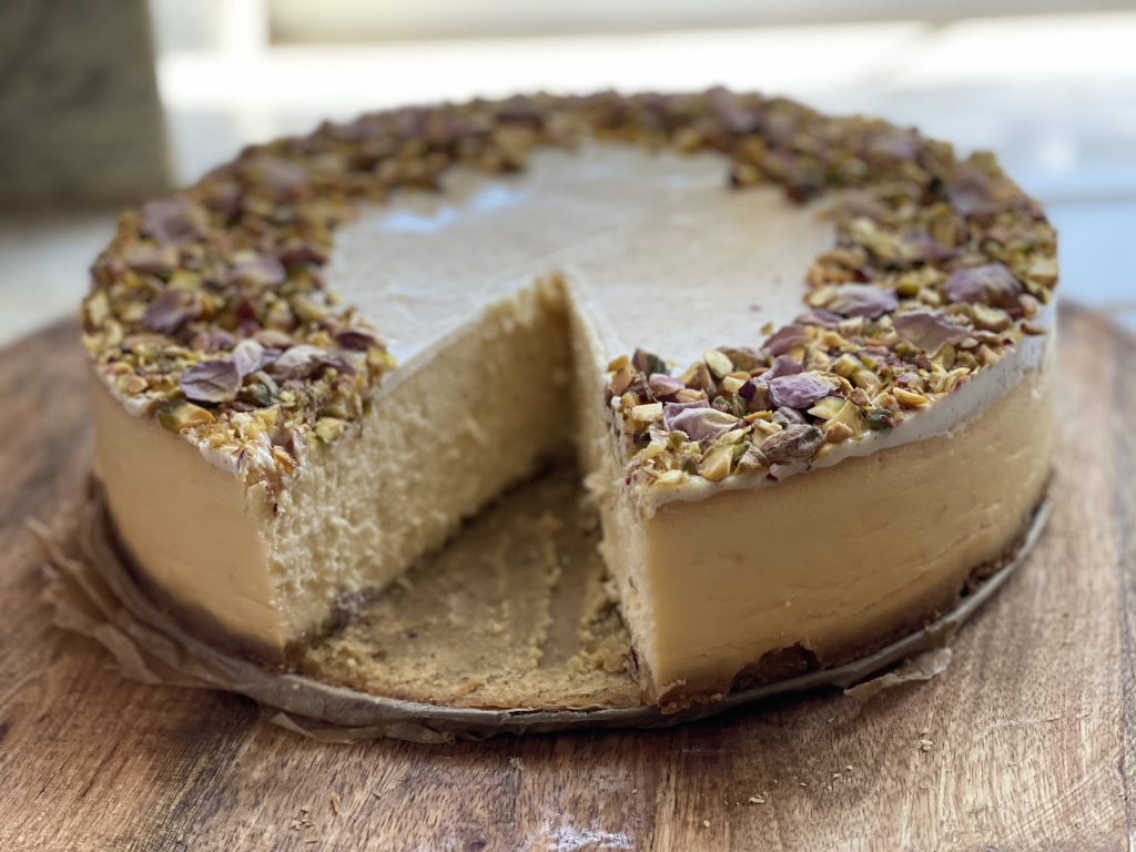 Całość udekoruj posiekanymi pistacjami Bakal i płatkami suszonej róży.